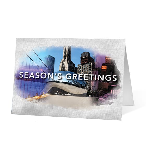 Watercolor Scenes Christmas corporate holiday greeting card thumbnail